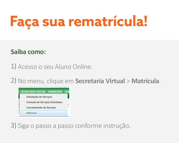 Entre os dias 30/10 e 18/11 estarão disponíveis no Aluno Online os instrumentos de pesquisa. Responda as perguntas e participe do aperfeiçoamento do processo acadêmico.