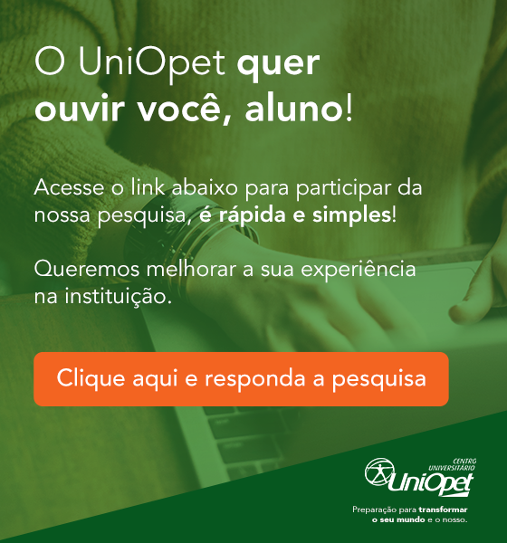 Entre os dias 30/10 e 18/11 estarão disponíveis no Aluno Online os instrumentos de pesquisa. Responda as perguntas e participe do aperfeiçoamento do processo acadêmico.