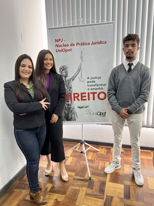 A Escola de Direito do UniOpet foi representada pelos alunos Paola Anjos Lima, Tatiane dos Santos Vieira e Kauan Henrique Stelle Barbosa, do 7º período, que chegaram às quartas de final, entre 20 faculdades e escritórios de advocacia de todo o país.