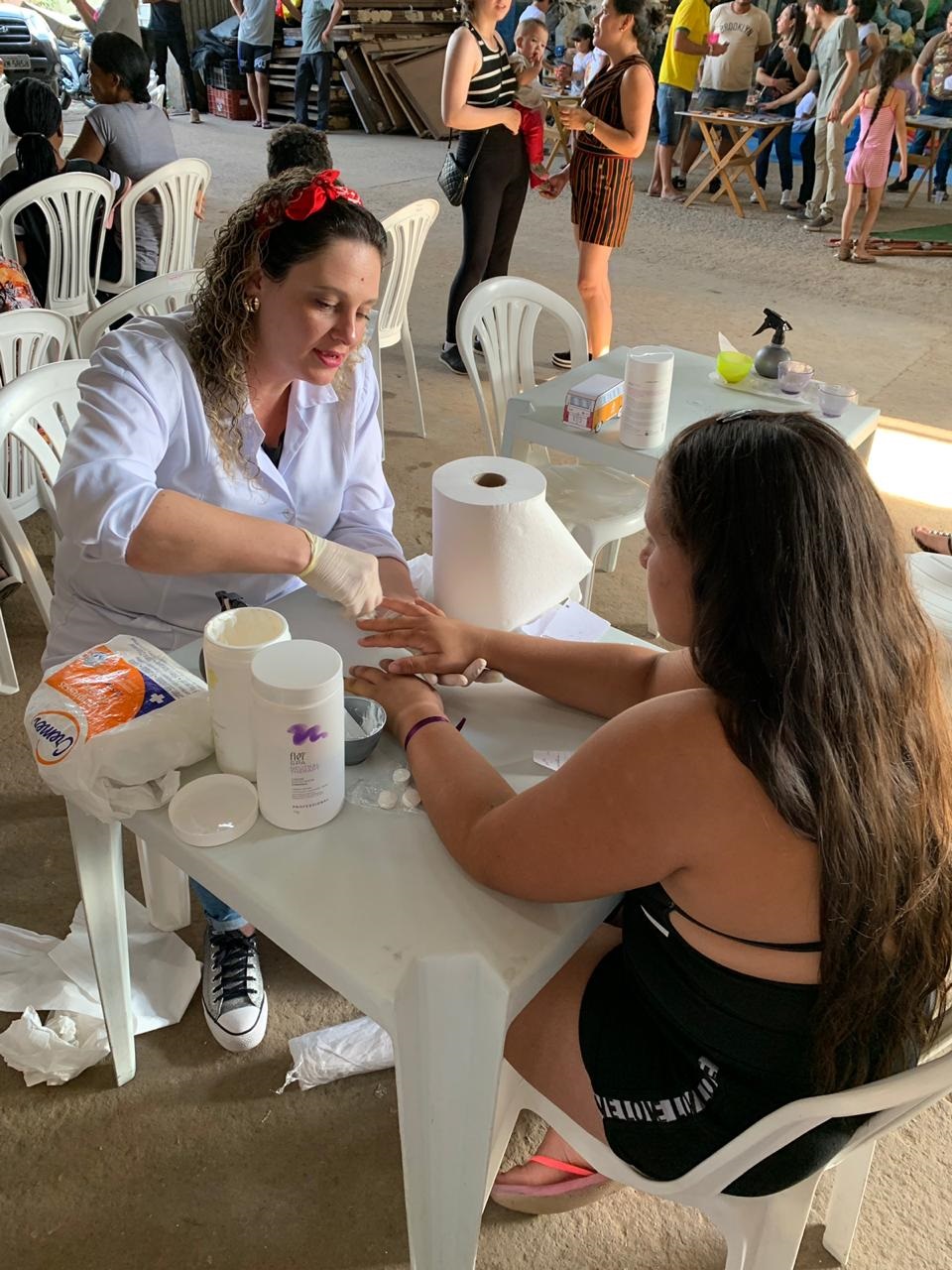 Além da entrega de chocolates e brincadeiras para as crianças, que teve apoio da pela Fundação de Ação Social (FAZ), a tarde contou com palestras sobre o cuidado com a saúde e tratamentos estéticos para as mulheres. “Teve aluno que levou a família para participar junto, e tivemos também a presença de ex-alunos que continuam nos ajudando até hoje”, conta a professora à frente do projeto que beneficia, todo ano, mais de 70 famílias carentes.