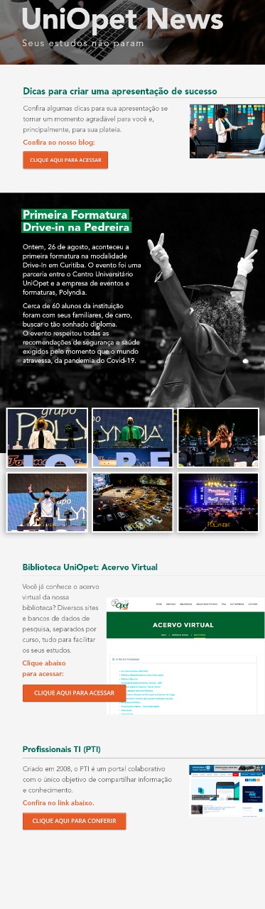 27 de agosto de 2020Confira o conteúdo completo aqui: http://www.opet.com.br/faculdade/newsletter/2708-uniopet-news-TEC.html