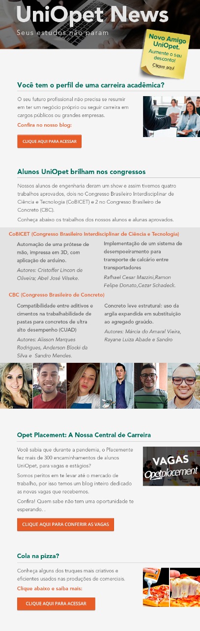 Confira aqui o conteúdo completo: http://www.opet.com.br/faculdade/newsletter/0309-uniopet-news-COM.html