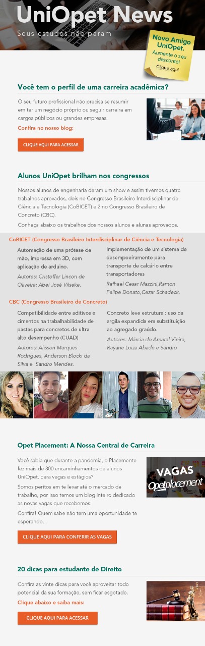 Confira o conteúdo completo aqui: http://www.opet.com.br/faculdade/newsletter/0309-uniopet-news-DIR.html