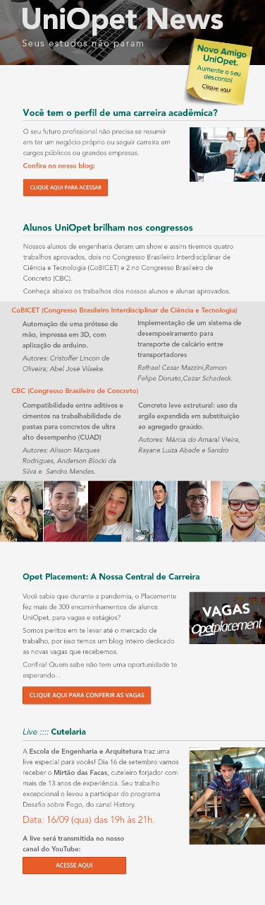 03 de setembro de 2020Confira o conteúdo completo aqui: http://www.opet.com.br/faculdade/newsletter/0309-uniopet-news-ENG.html