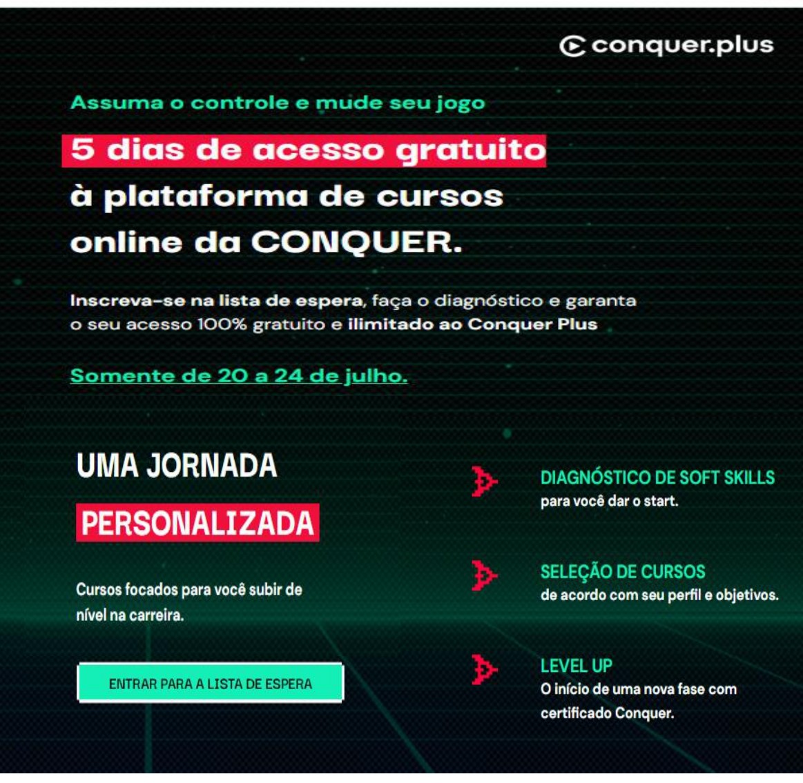 A Conquer Plus liberou o acesso gratuito à todos os cursos (14/07/22)