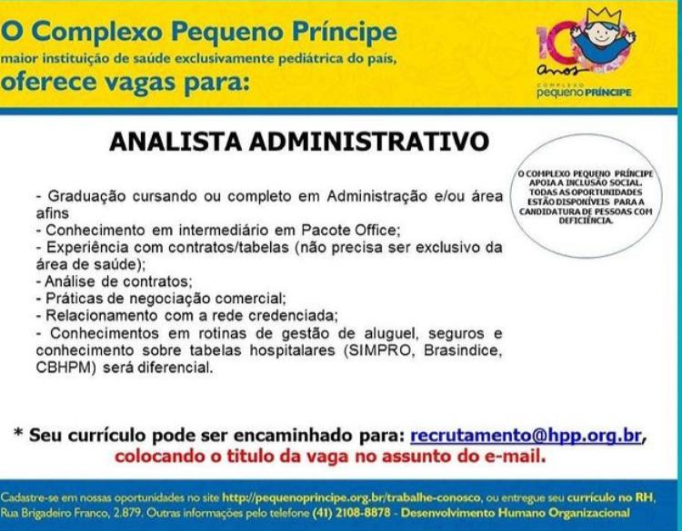 Vaga Analista Administrativo (24/06)