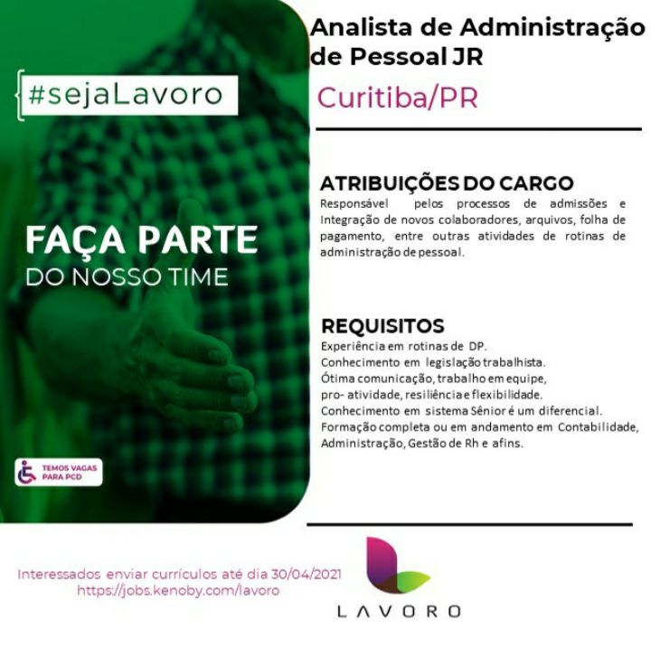 > Analista de Administração de Pessoal JR (20/04)