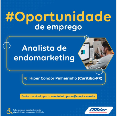 Para participar do nosso processo seletivo, envie o seu currículo para vanderleia.paiva@condor.com.br com o nome da vaga no assunto do e-mail.