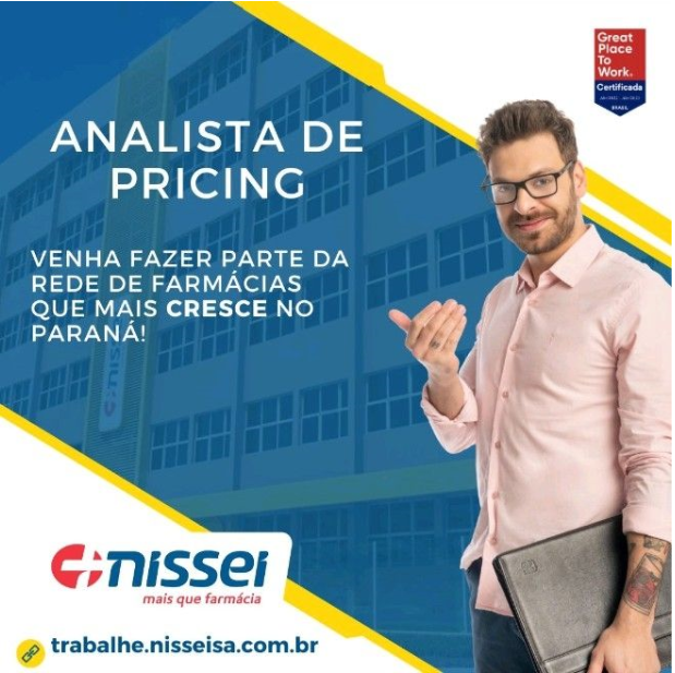 Analista de Princing (02/08/22) Requisitos: Experiência na área de Pricing; Ensino Superior completo em Administração, Ciências Contábeis, Economia ou áreas correlatas; Excel avançado. Inscreva-se pelo link AQUI