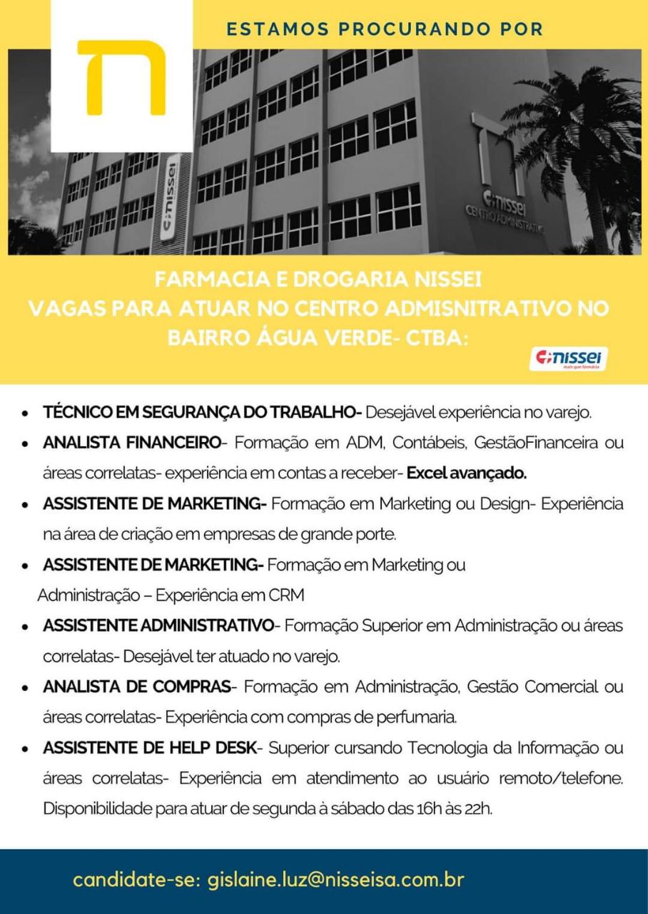 Página inicial > Drogarias Nissei – Diversas Vagas (07/10)