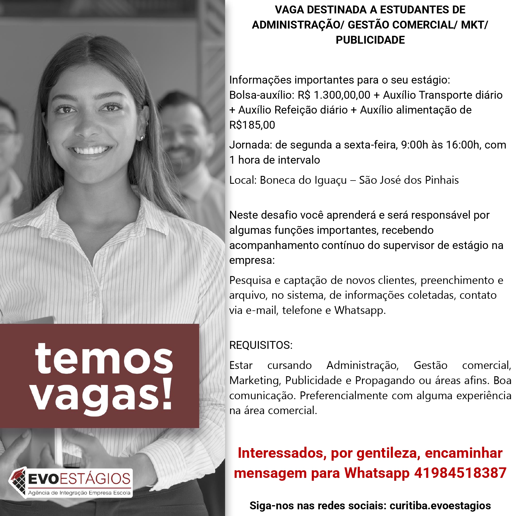 Estágio Administração / Gestão Comercial/ MKT/ Publicidade e Propaganda (07/12/22)