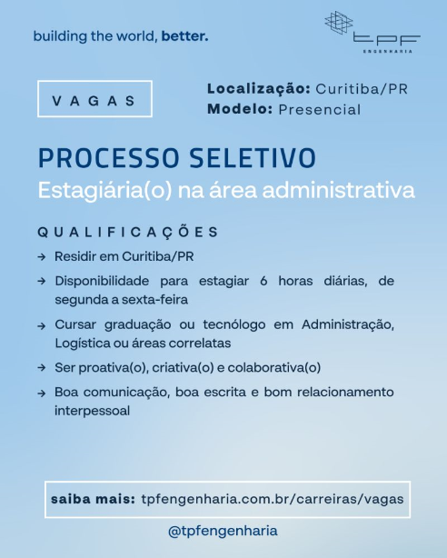 Saiba mais: tpfengenharia.com.br/carreias/vagas