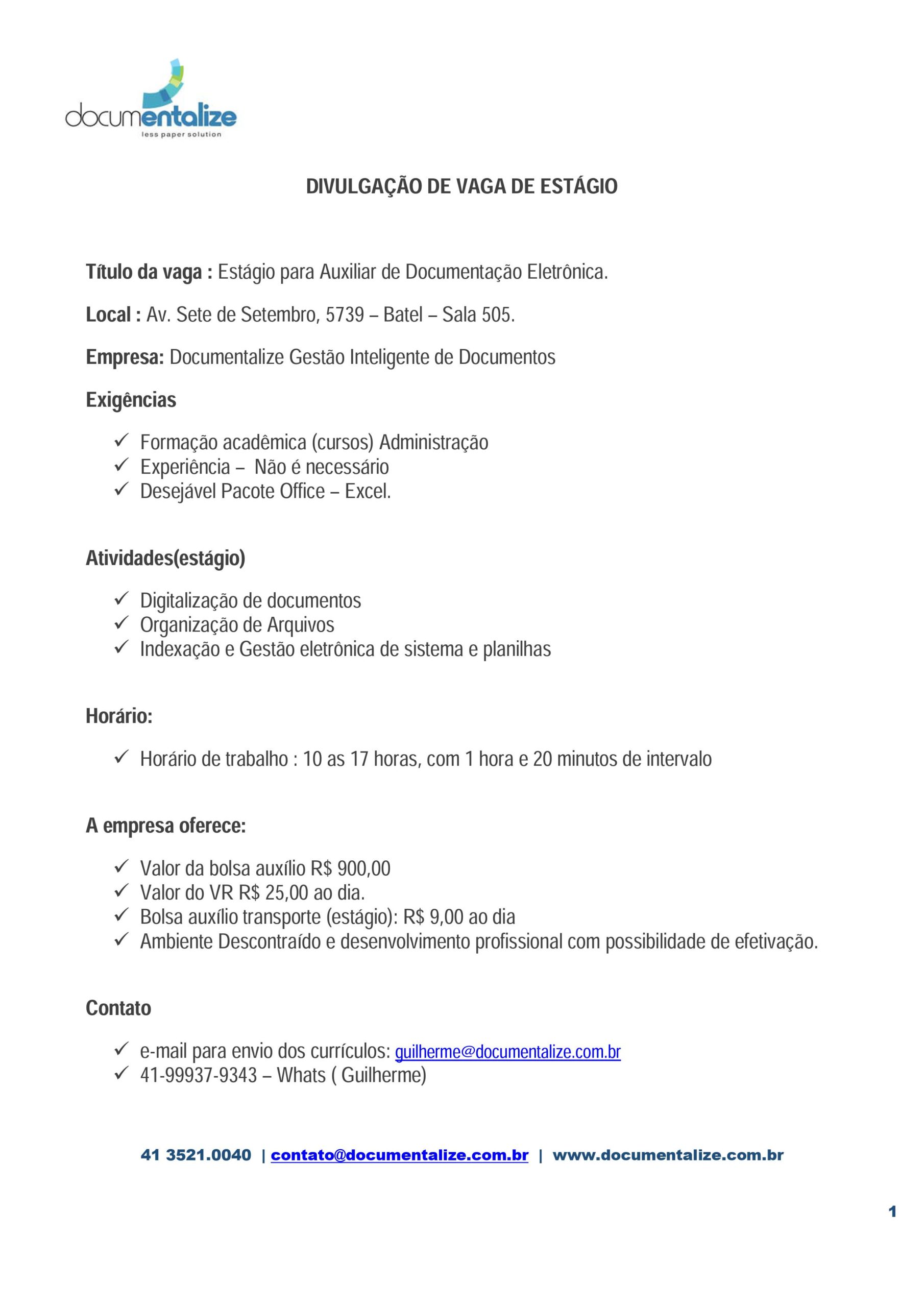 Estágio – Auxiliar de Documentação Eletrônica (31/05/22)