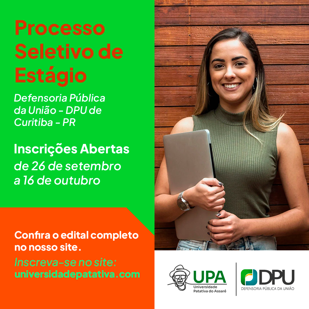 As inscrições estão abertas de 26/09/2022 à 16/10/2022 exclusivamente pelo site da Universidade Patativa. As vagas ofertadas são para o curso de Direito e qualquer estudante regularmente matriculado poderá realizar sua inscrição, de acordo com o edital publicado.