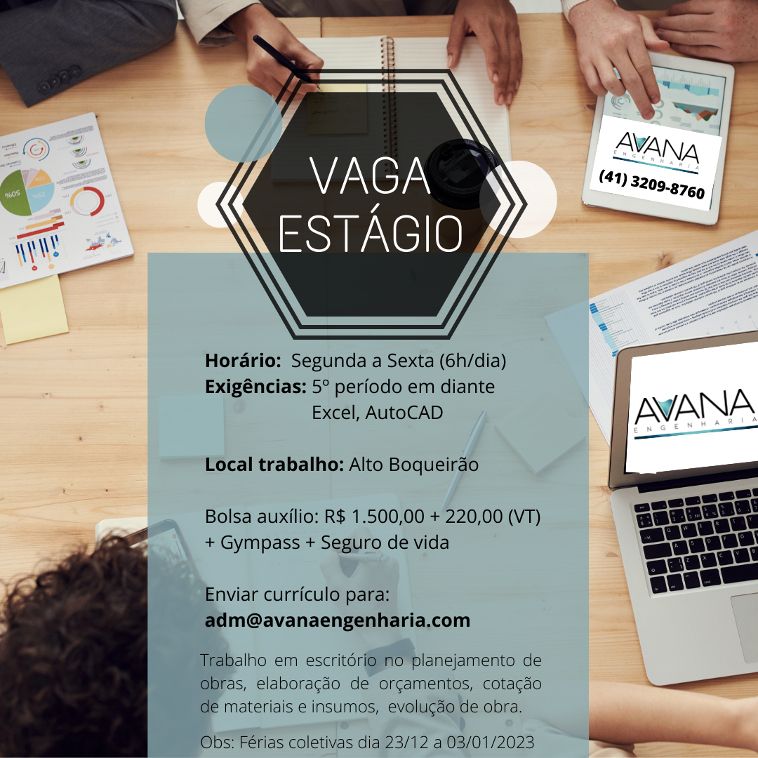 Interessados enviar currículo para adm@avanaengenharia.com e inserir o nome da cidade de atuação (CURITIBA), no título do E-mail.