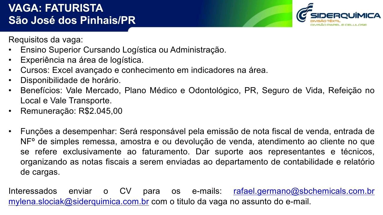 > Estágio Faturista – SJP (30/09)