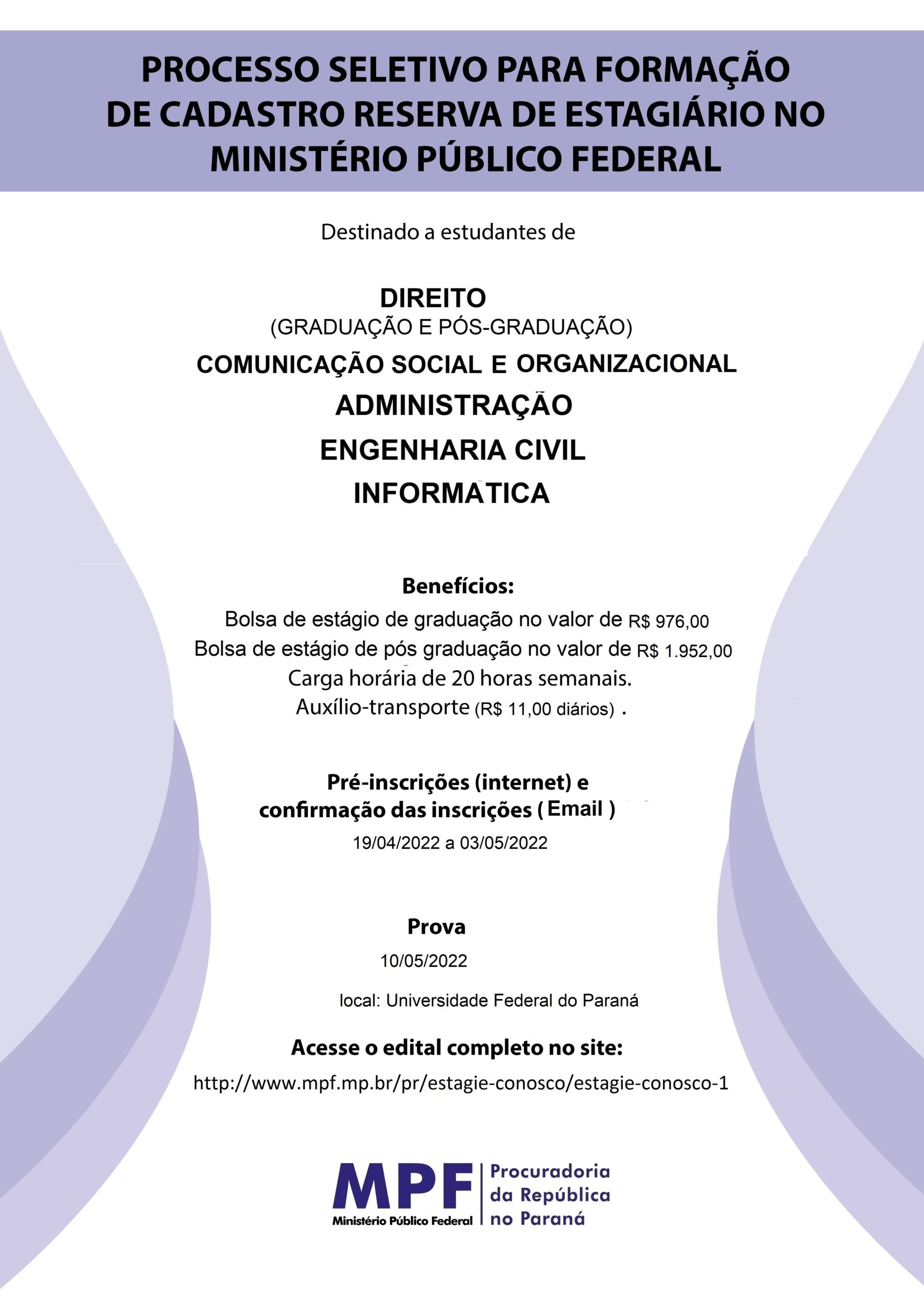 Página inicial > Estágio para diversas áreas I MPF (19/04/22)