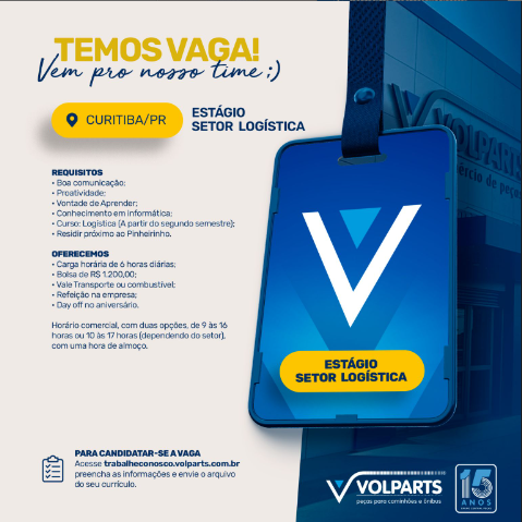 Estágio Setor Logística (30/01/24) Se você está pronto para um novo desafio, envie seu currículo através de AQUI