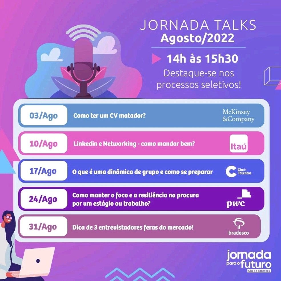 Inscrições para o Jornada Talks, aqui: AQUI