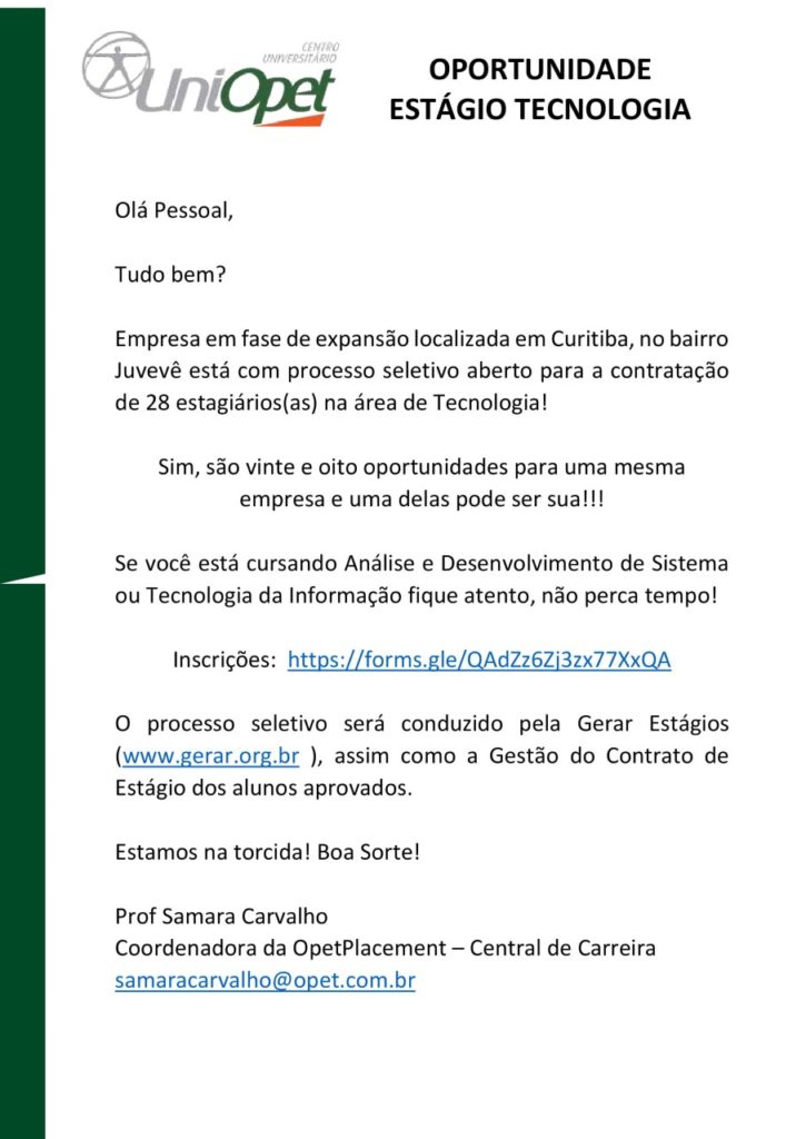 Oportunidade para área Tecnologia (03/09)