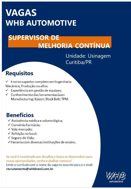 Interessados enviar currículo para o email: tatianenwagner@gmail.com