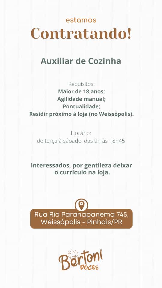 Oportunidade Efetiva – Auxiliar de Cozinha (17/02)