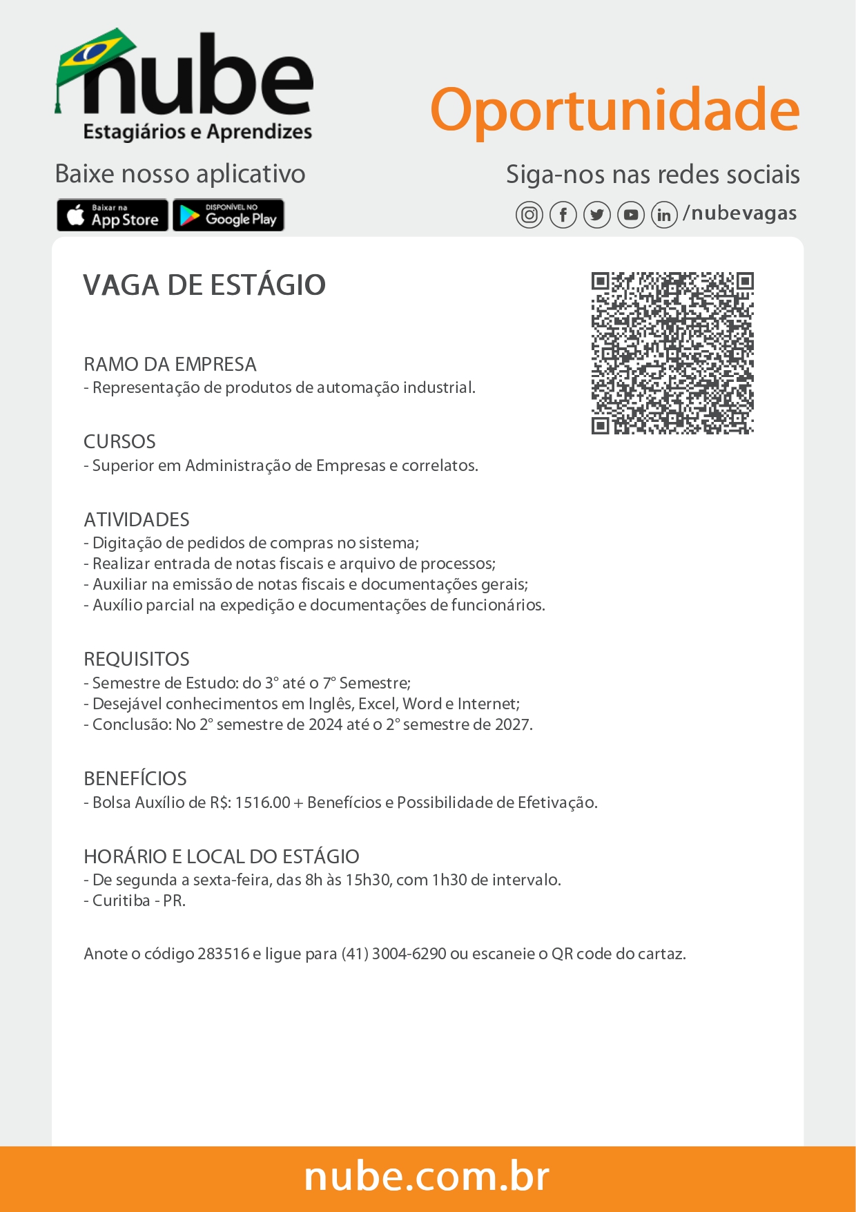 • Disponibilidade para atuar em escritório na região de Curitiba – PR.