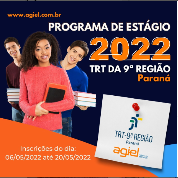 Programa de Estágio 2022 I TRT 9ª Região (17/05/22) Para informações e inscrições, clique aqui Inscrições até 20/05 ⏳