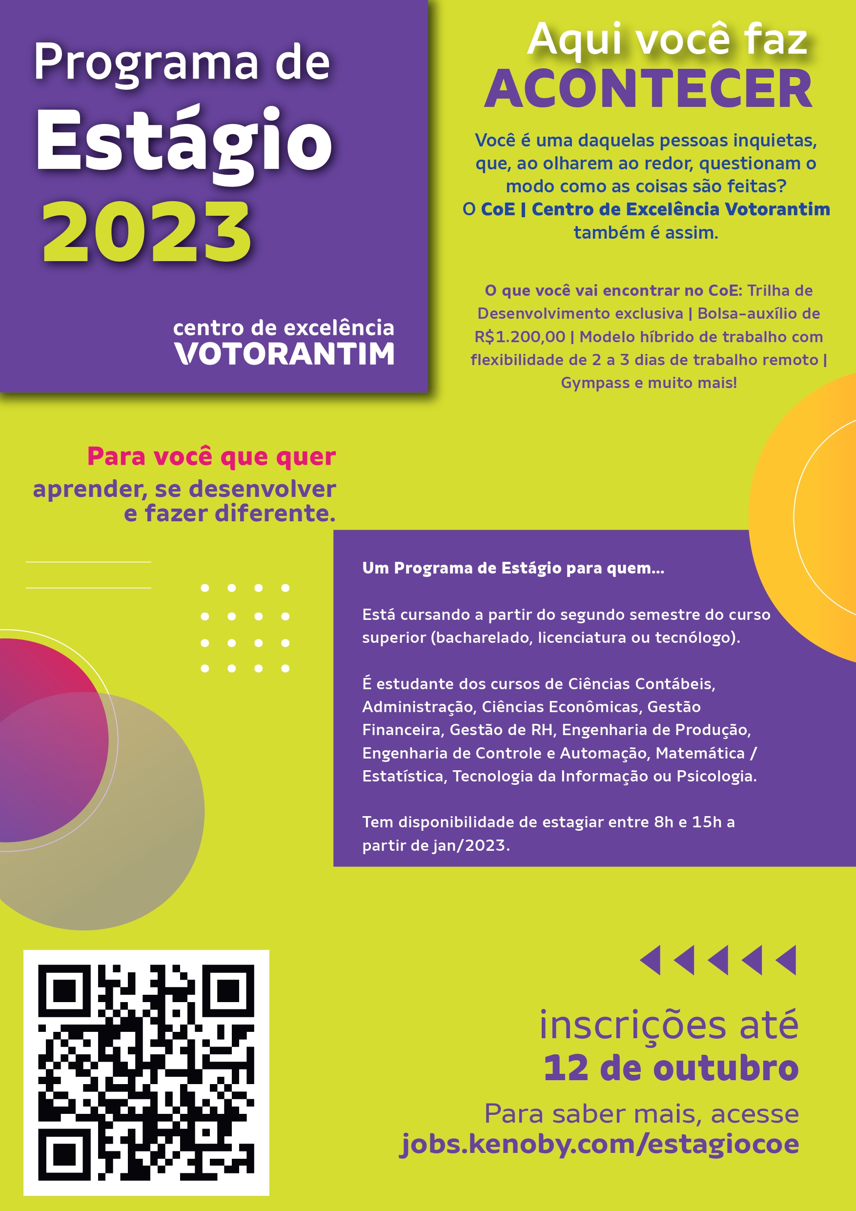 Podem se inscrever estudantes universitários (bacharelado, licenciatura ou tecnólogo) a partir do segundo semestre e com pelo menos um ano até a conclusão da graduação nos cursos: