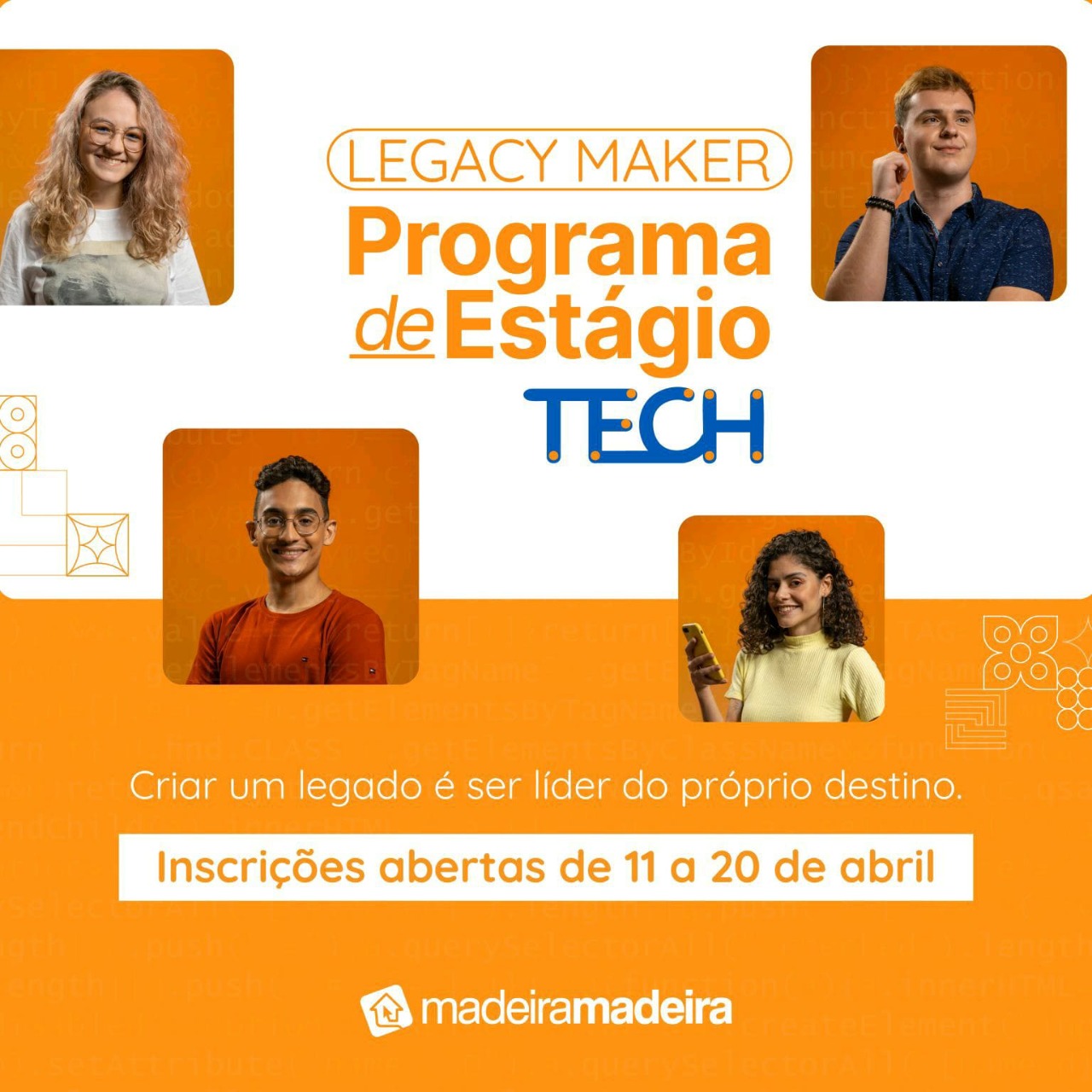 🚀🚀O Programa de Estágio Legacy Maker {Tech Edition} busca estudantes que querem construir uma carreira através de conhecimento, inovação e tecnologia, entregando resultados surpreendentes para impactar a vida de milhares de pessoas e cumprindo o propósito de reinventar a forma como as pessoas montam suas casas.