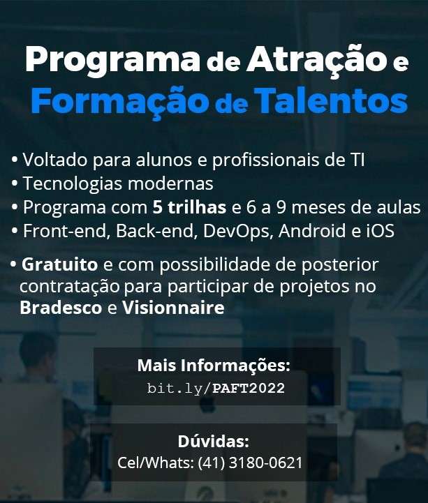 Inscrições gratuitas até 26/06/2022