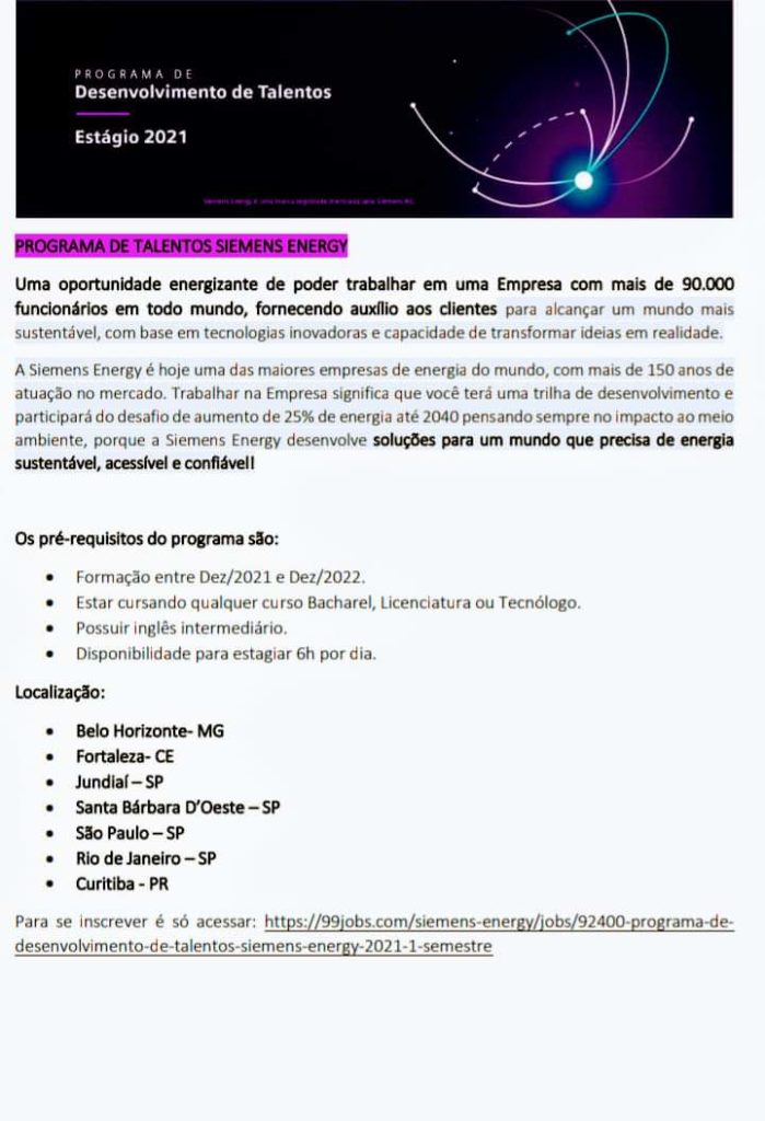 Programa Talentos – Siemens (Infraestrutura e Indústria) 18/09