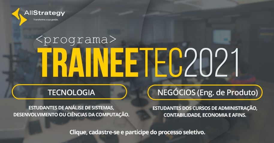 Programa Treinee (18/06) Ficou interessado? Cadastre-se nesse link e faça parte da AllStrategy! https://bit.ly/3wO9qT1
