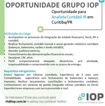 > Vaga Analista Contábil Jr (27/04)