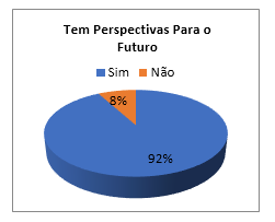 Noventa e dois por cento dos idosos entrevistados responderam que tem perspectivas para o futuro, uma grande parte pretende viajar a algum destino muito desejado, outros querem se manter ativos e com saúde, e outros ainda querem estar presentes ao nascimento e ou casamento de netos (Gráfico 6). Ter perspectivas para o futuro os mantém motivados a cuidarem da saúde e fortalecer seu vínculo com a família e amigos, e também os matem ligados aos avanços da sociedade atual.