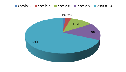 Para se aprofundar em relação ao uso de EPI’s realizamos uma questão para o entrevistado informar em uma escala de 0 a 10 o quanto se sentiria seguro se o profissional fizer o uso de EPI’s (Equipamento de Proteção Individual), como máscara, luvas, touca, jalecos, materiais descartáveis durante o procedimento, onde o resultado demonstra que aproximadamente 70% atribuiu escala 10 em relação à importância desses equipamentos (Figura 5).