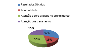 Para 30% dos entrevistados, o que os faz retornar ao estabelecimento para realização do mesmo ou outros procedimentos estéticos é a cordialidade e a atenção dispensada pelo profissional. O resultado obtido e a atenção pós-tratamento é importante para 23% e 32% dessa população, respectivamente. Por fim a pontualidade é fundamental para 15% dos indivíduos avaliados (Figura 6).