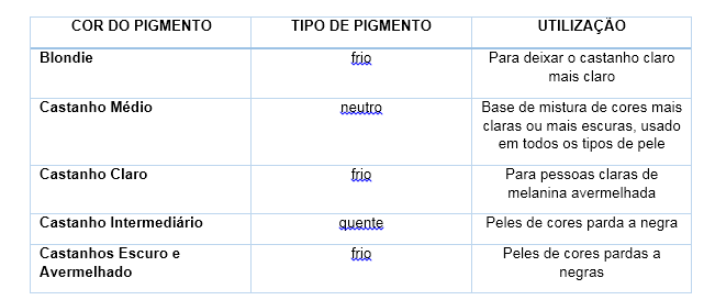 Atualmente os fabricantes de pigmentação estão desenvolvendo novas cores na tentativa de obter a pigmentação mais próxima da pele do corpo humano na tentativa de camuflar cicatrizes que a intervenção cirúrgica gera sobre os tecidos. Pigmentos com tons esverdeados são utilizados para neutralizar peles avermelhadas/quentes, e pigmentos alaranjados são utilizados para neutraliza colorações azuladas ou esverdeadas/fria. Esse novos pigmentos são utilizados na dermopigmentação 12 (QUADRO 1).